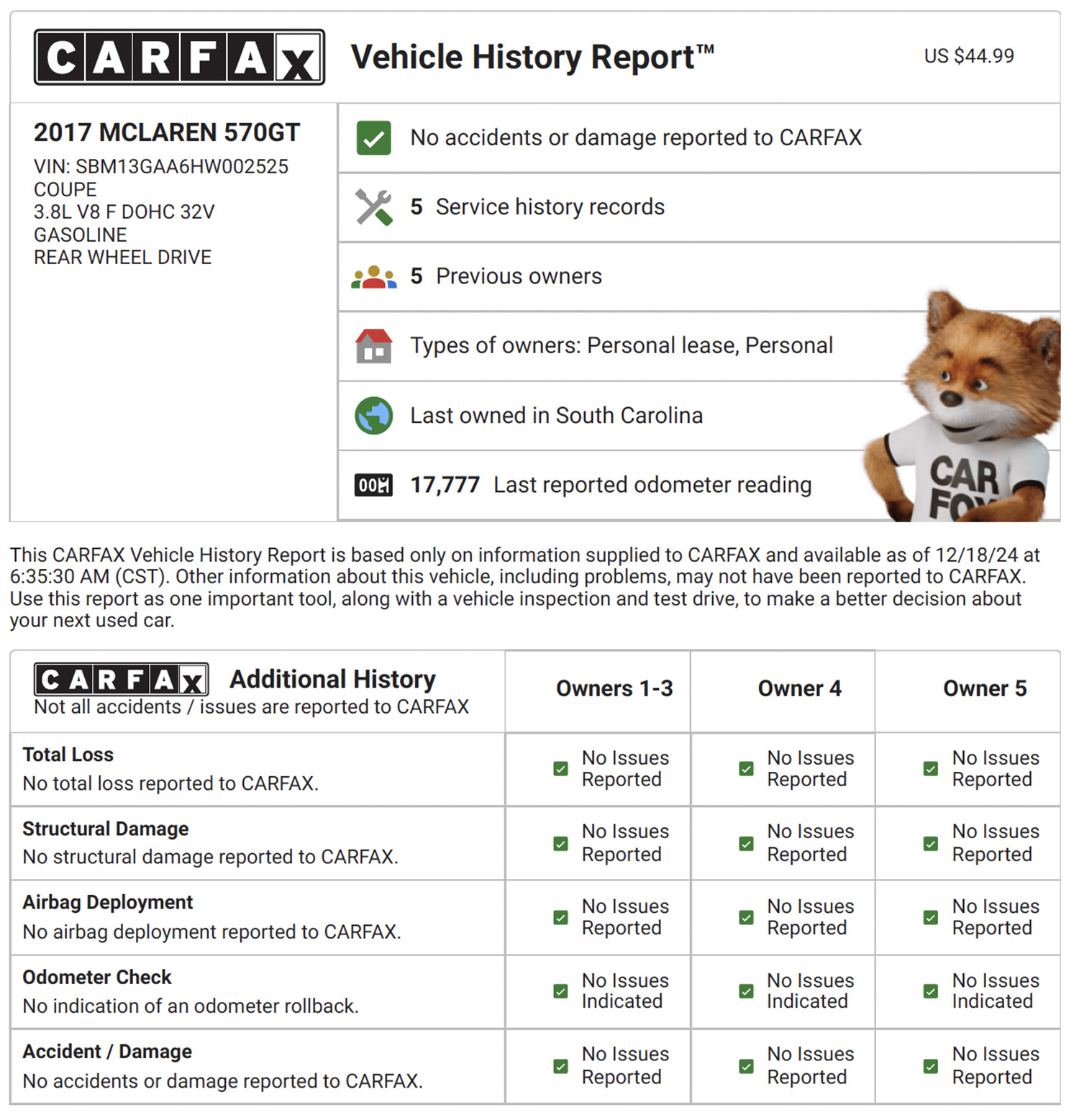 - Clean Carfax (shown below)