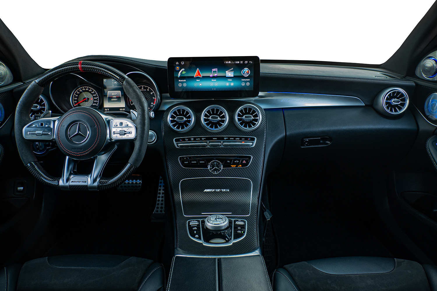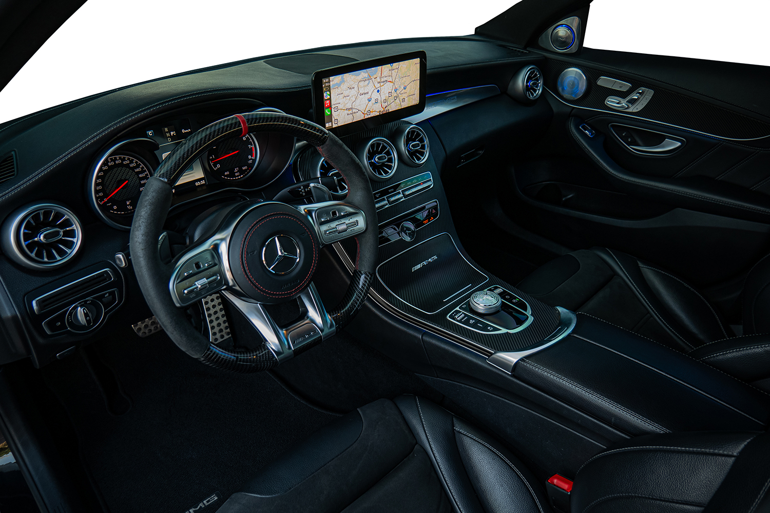 - Upgraded 2020+ carbon fiber steering wheel