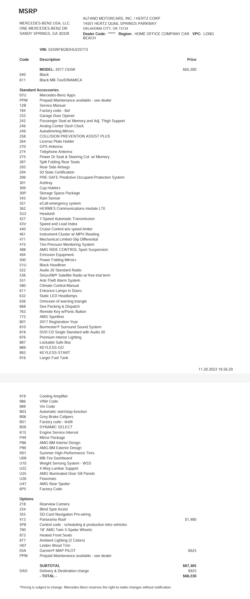 Original MSRP $68,230 (Monroney label shown below)