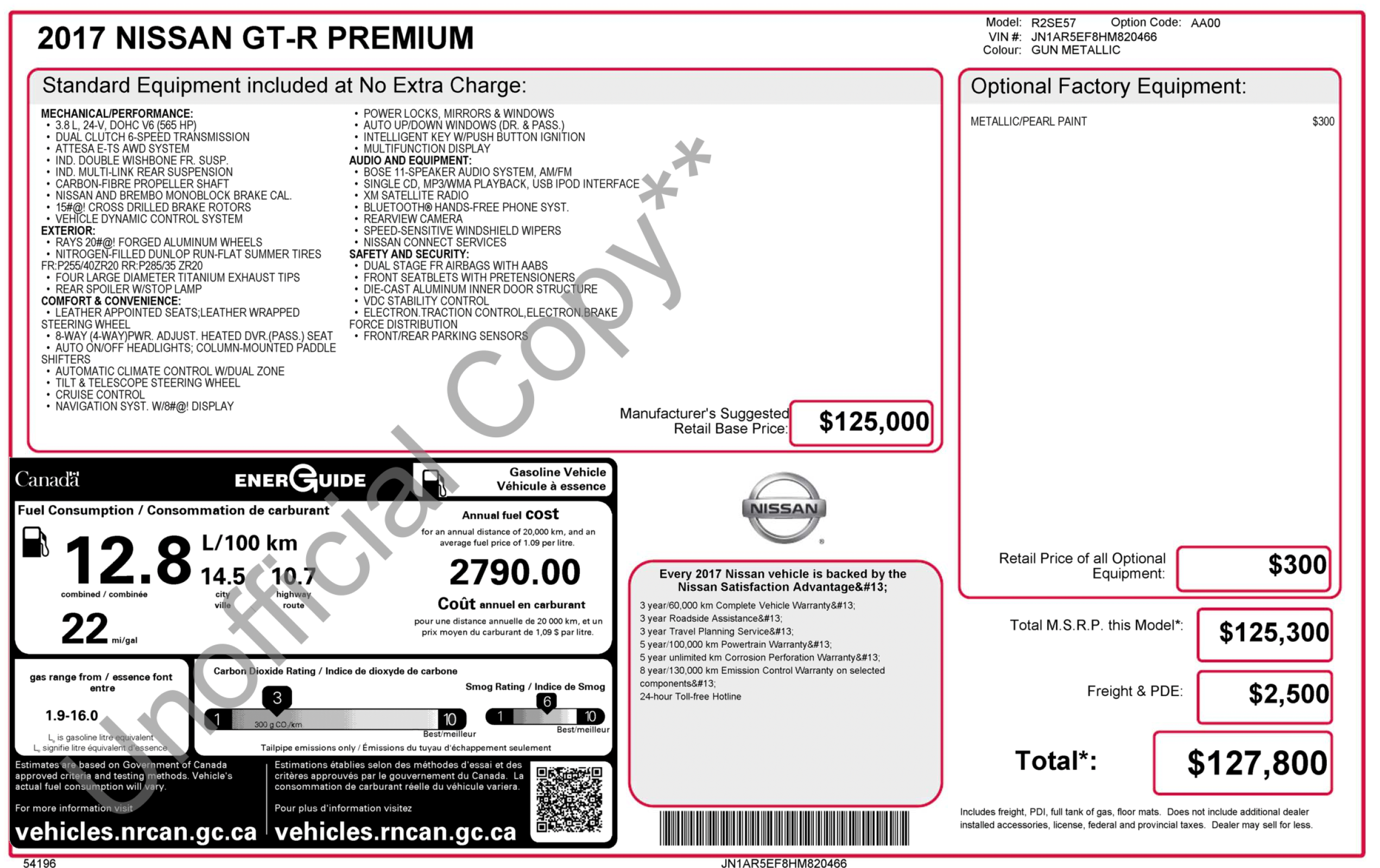 Slide into the cockpit, and you’re greeted by a luxurious, driver-focused interior that seamlessly blends modern technology with a touch of classic performance car heritage. Heated leather-appointed seats provide both comfort and support, while the premium Bose® audio system fills the cabin with concert-quality sound. The GT-R Premium also boasts a sophisticated touchscreen infotainment system and customizable digital displays to keep you fully engaged on every drive. Whether you’re carving up backroads or cruising through the city, the 2017 Nissan GT-R Premium promises an unforgettable, pulse-pounding driving experience that will leave you wanting more.