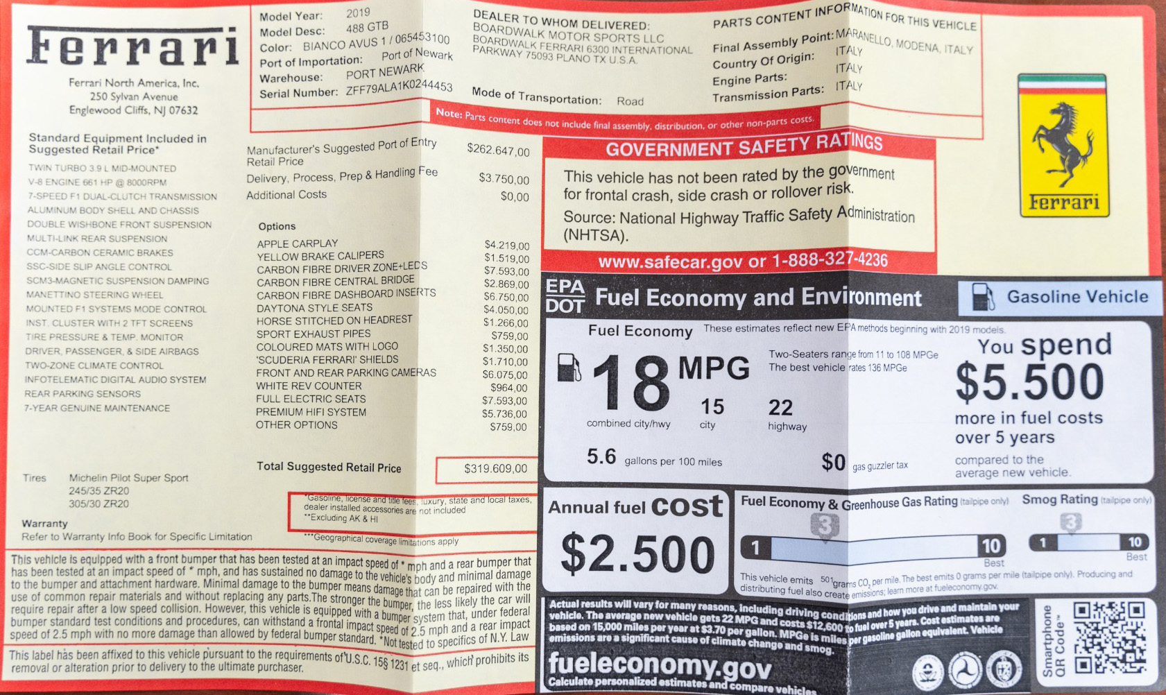 This is the one! You are looking at the most beautiful Ferrari 488 available on the market. This timeless classic will be celebrated for years to come. It comes with the beautiful Bianco Avis 100 paint with Nero 8500 leather interior accented by beautiful carbon fiber throughout the inside. This car is the pinnacle of Italian craftsmanship and is outlined with every detail of the car. This beauty comes with a conservative 9k miles and is highly optioned with the following specifications: