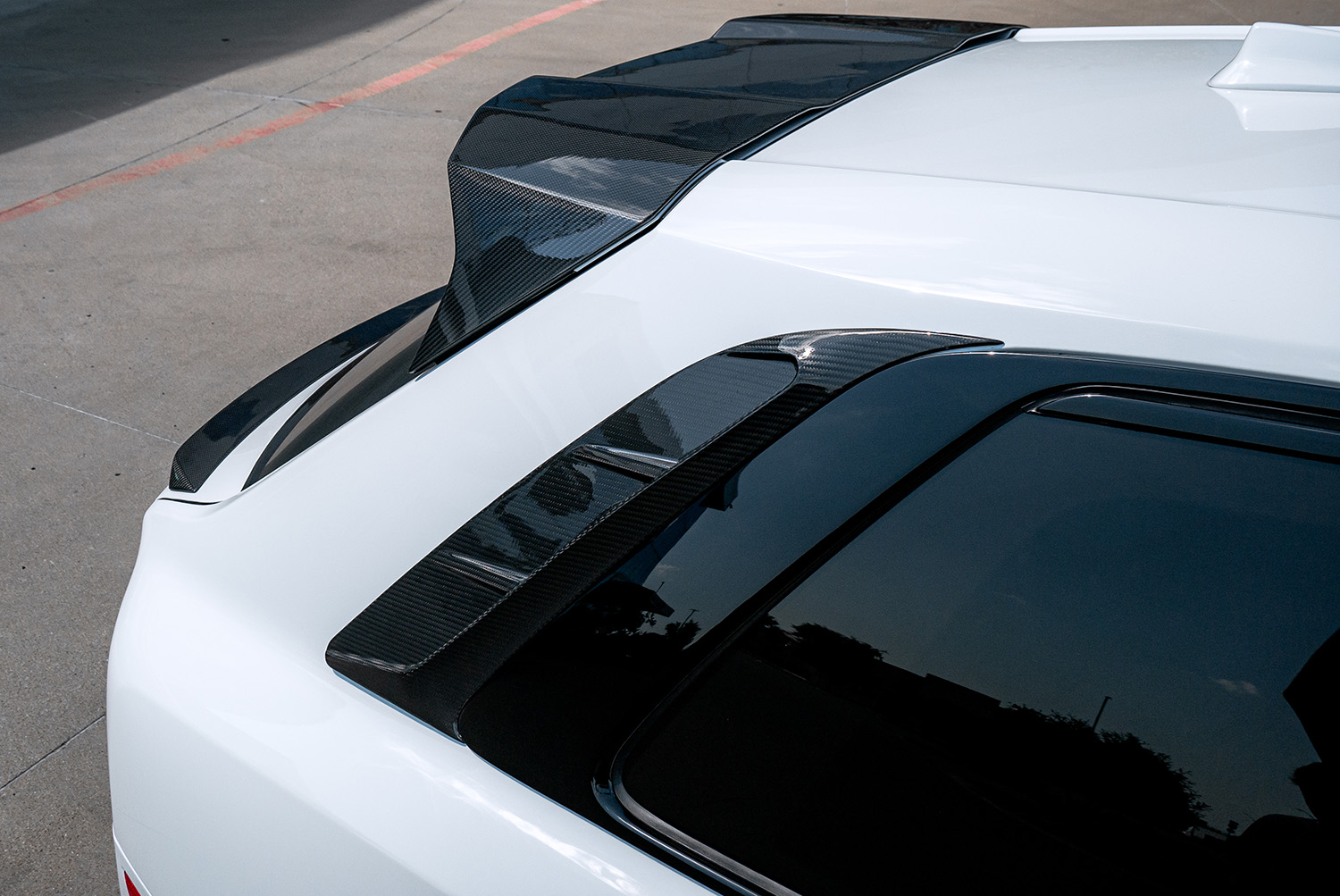Custom front bumper, rear bumper, carbon fiber diffuser, carbon fiber rear wing, wide body fenders w inlets, carbon fiber hood, carbon fiber door moldings, carbon fiber door handles. carbon fiber inserts, custom foot pedals and interior accents.