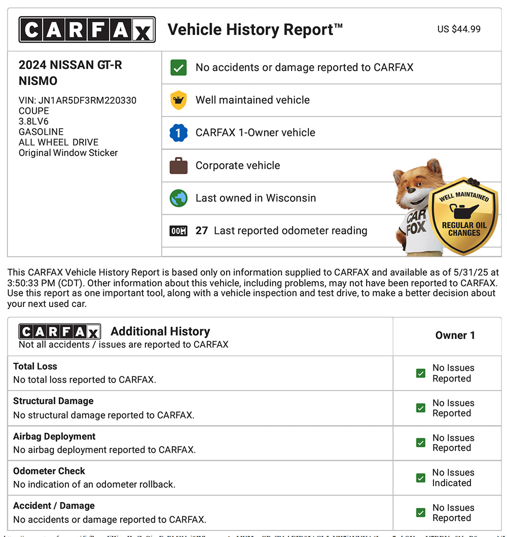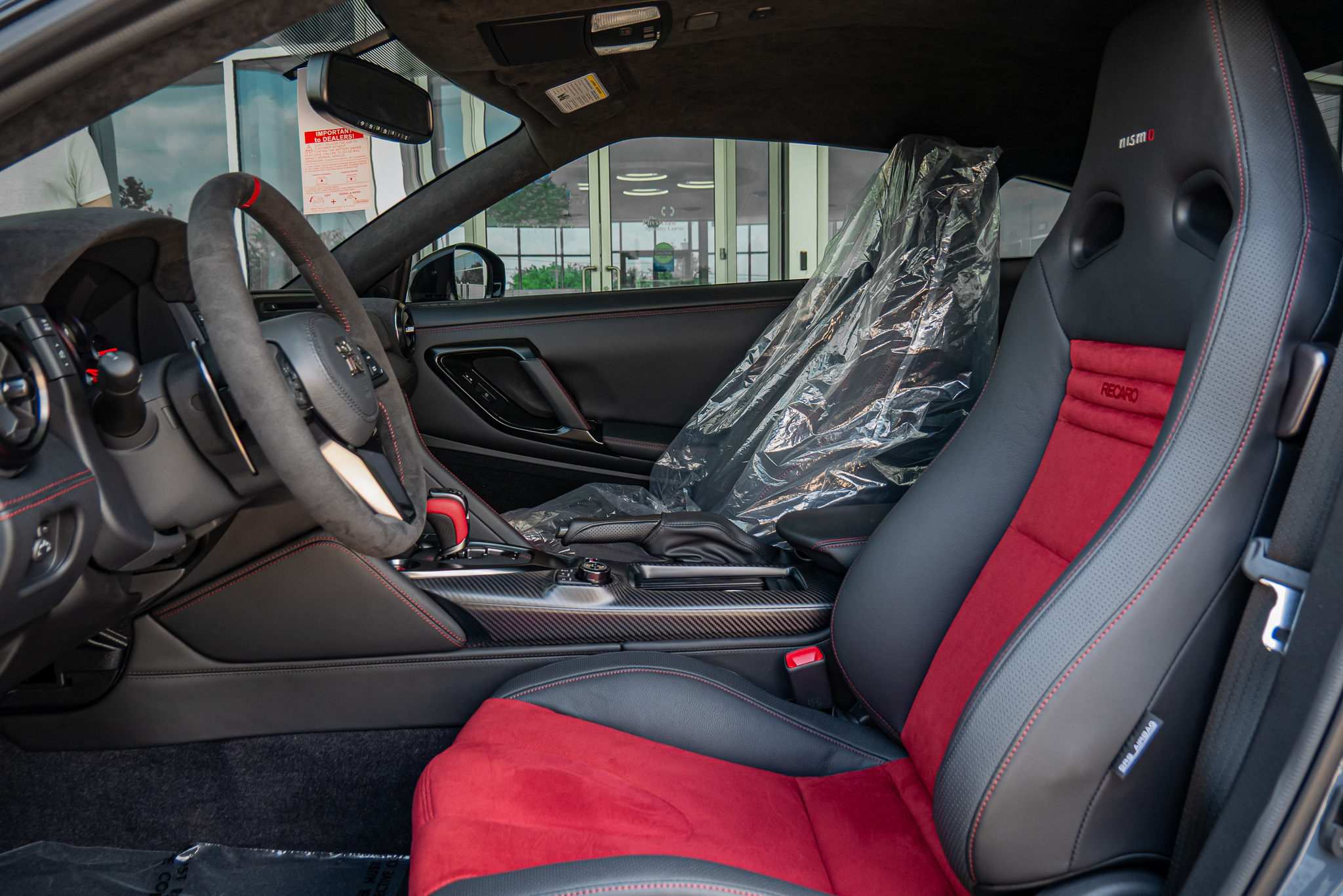 Inside, the GT-R NISMO offers a driver-focused cockpit adorned with premium materials and race-inspired details. Recaro® leather-appointed front seats with synthetic suede inserts provide support during spirited driving, while red stitching and Alcantara® accents on the steering wheel and dashboard add a touch of sophistication. An 8-inch multi-touch display with NissanConnect® infotainment, Apple CarPlay®, and a Bose® 11-speaker audio system ensures connectivity and entertainment on every journey . As the final iteration of the R35 GT-R in the U.S. market, the 2024 GT-R NISMO represents a culmination of performance, design, and technological prowess, making it a coveted addition to any enthusiast's collection.