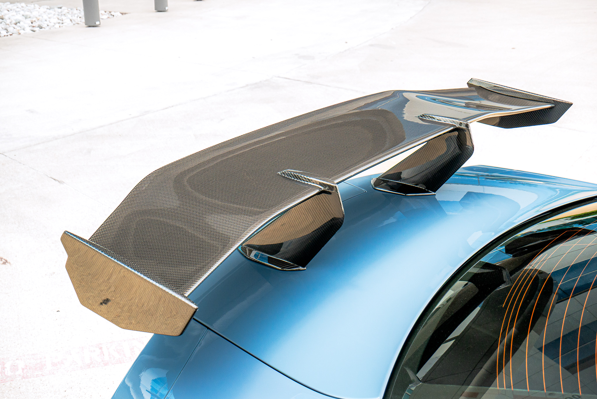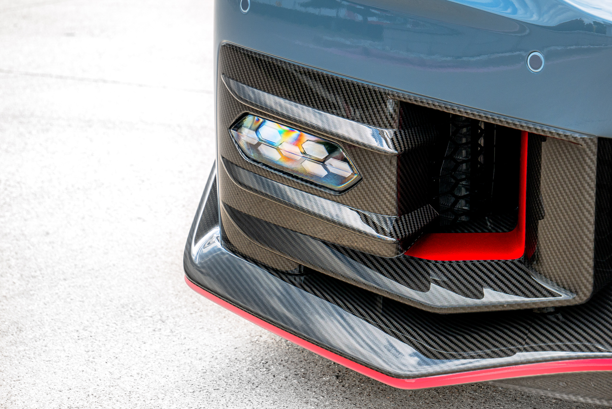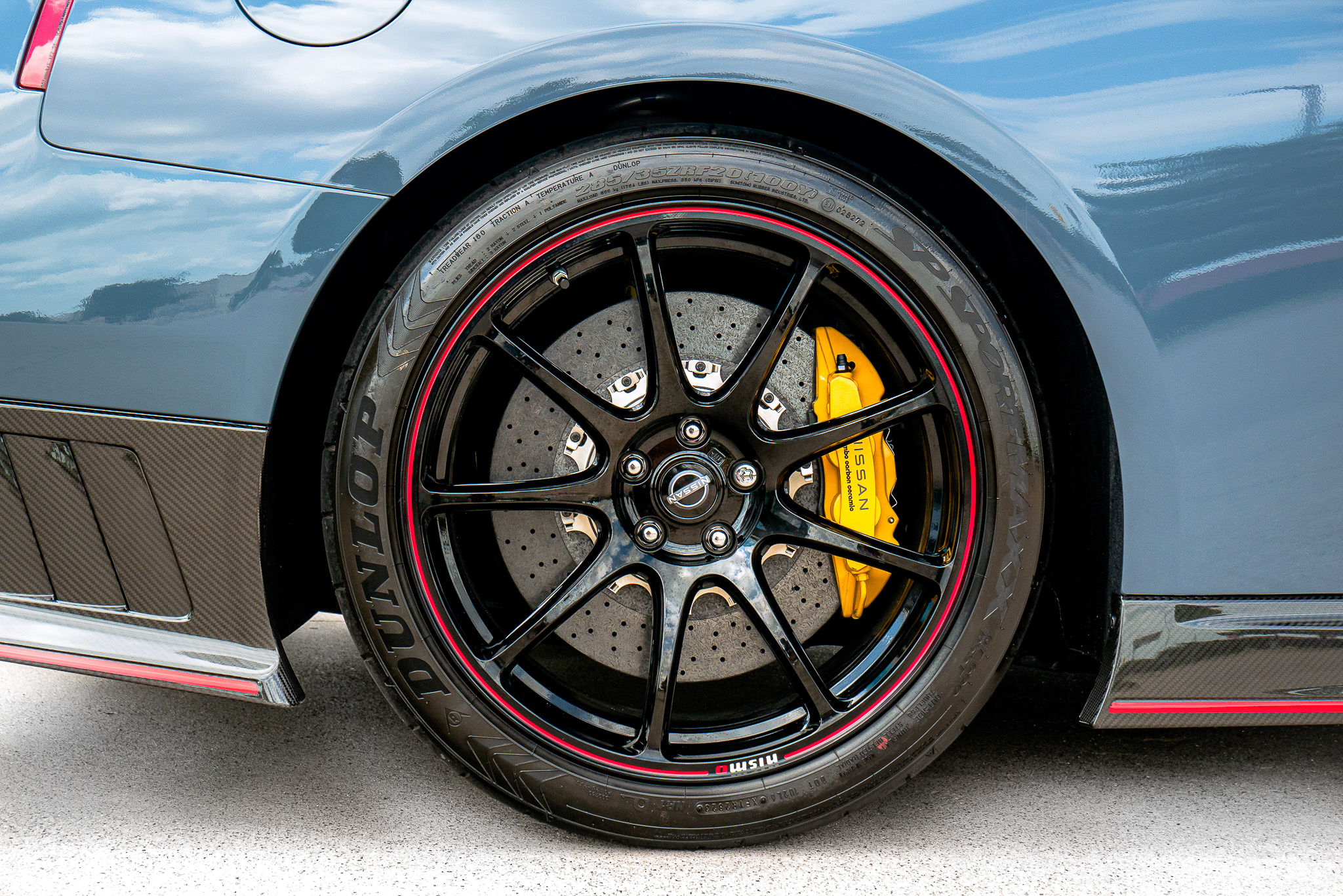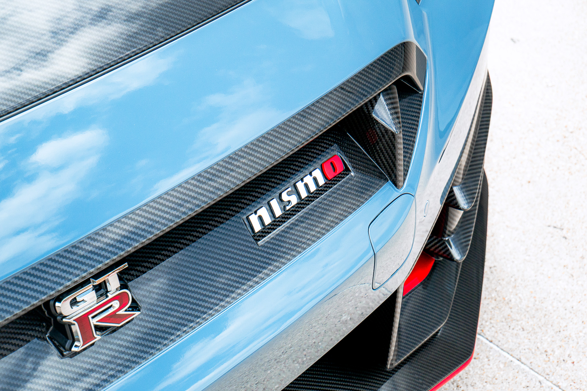 The GT-R NISMO's exterior is a testament to aerodynamic efficiency and aggressive styling. Extensive use of carbon fiber on components like the hood, roof, trunk lid, and aerodynamic elements reduces weight and lowers the center of gravity, enhancing handling dynamics. A newly designed rear wing, mounted on swan neck-style supports, increases downforce by nearly 10%, optimizing stability at high speeds . The optional NISMO Appearance Package adds red-accented RAYS® forged 20-inch wheels, a clear-coated carbon fiber hood, and a unique engine cover design, further distinguishing this high-performance machine .